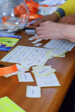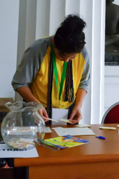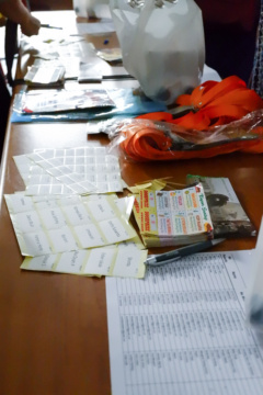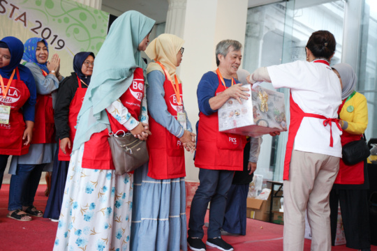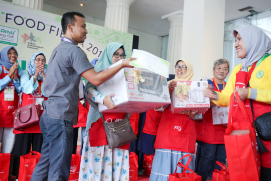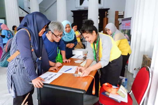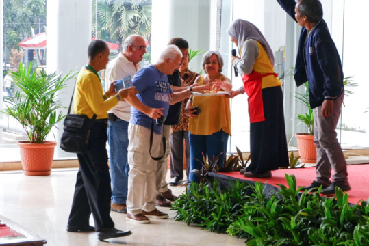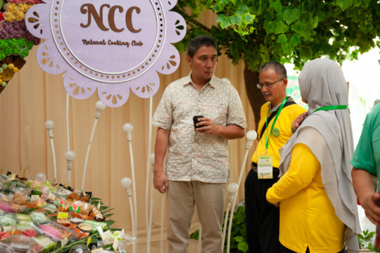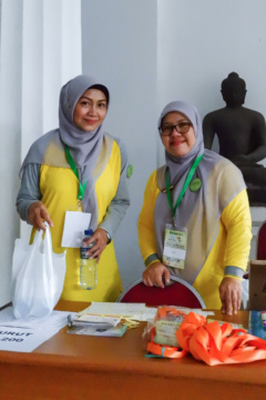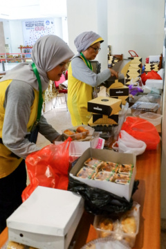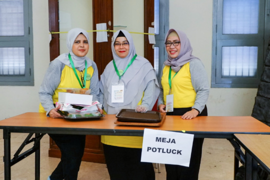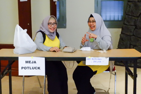 Peserta mulai berdatangan, registrasi, mengumpulkan Potluck. Tim Potluck mulai mengatur potluck untuk dipajang dan dibagikan.