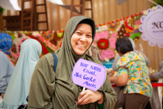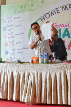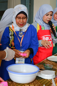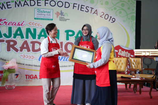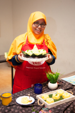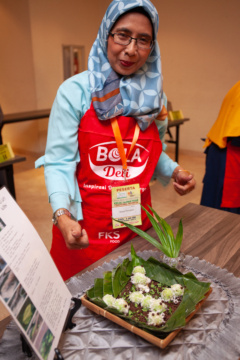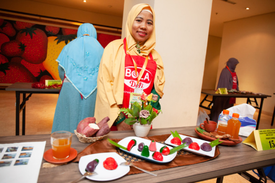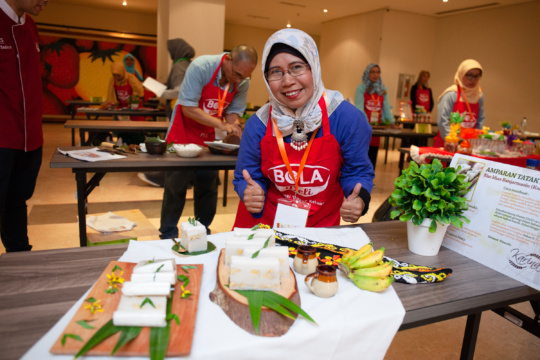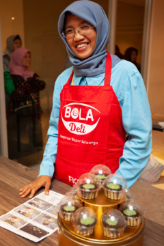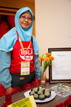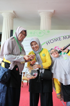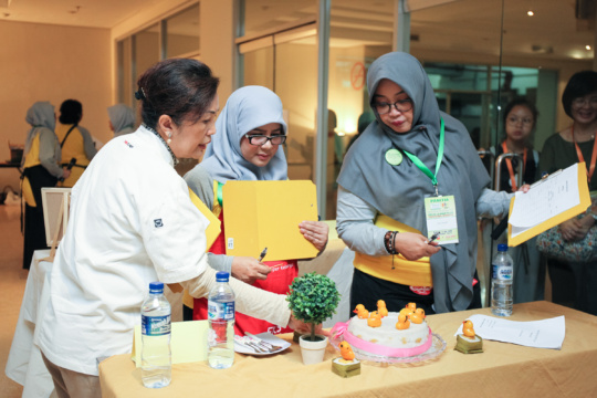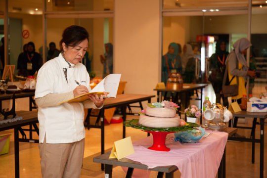 Keesokan pagi ibu Mutmainah muncul di meja lomba dengan kuenya yang sudah jadi. Ternyata beliau mencoba lagi dan lagi, kuenya gagal hingga 3-4 kali, hingga akhirnya berhasil dan masih ada waktu untuk datang ke HMFF melanjutkan menjadi peserta lomba. Alhamdulillah! Man jadda wajada!