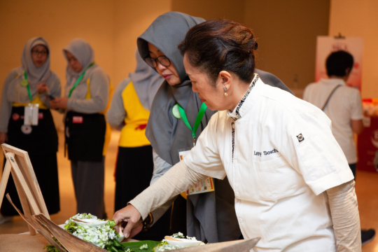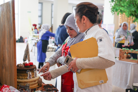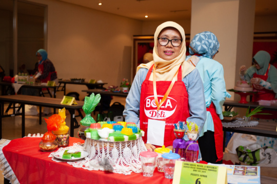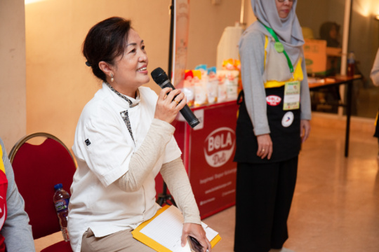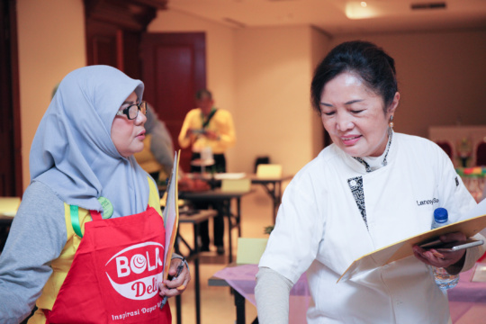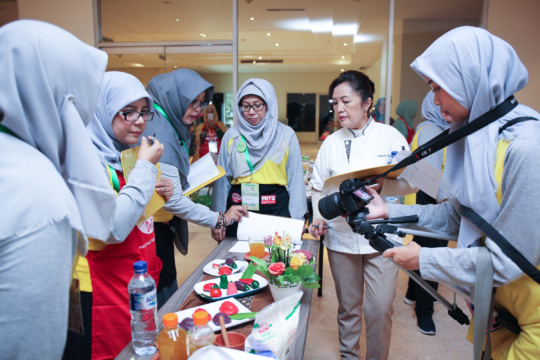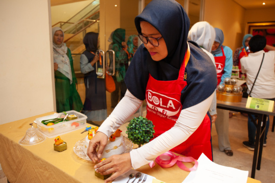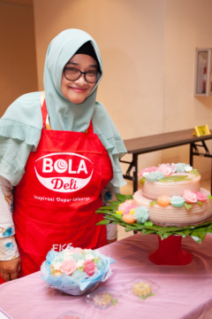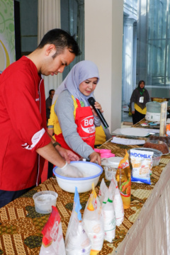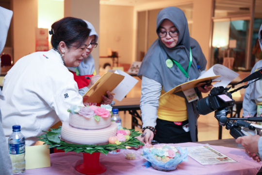 Di ruang bawah berlangsung lomba perorangan. Meskipun di sini peserta tinggal melakukan plating dan finishing touch, gak bisa dianggap remeh loh. Persiapannya serius dan peserta diharuskan menyertakan foto step by step pembuatannya dengan menggunakan bahan dari tepung @bolakeluarga.
