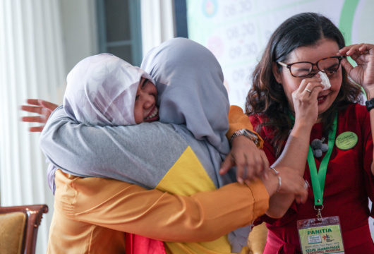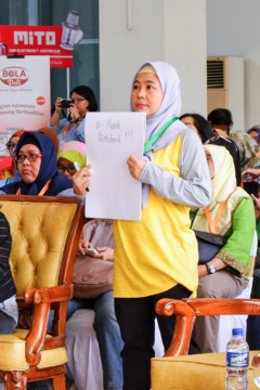 Psst, sebentar lagi lomba mau dimulai. Dewan juri sudah lengkap: Ibu Lanny Soechan, Ibu Fatmah Bahalwan dan Ibu Peni Respati.