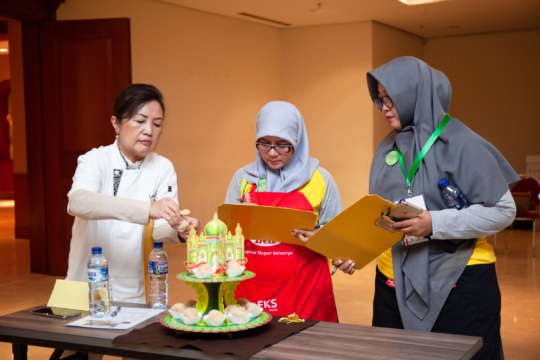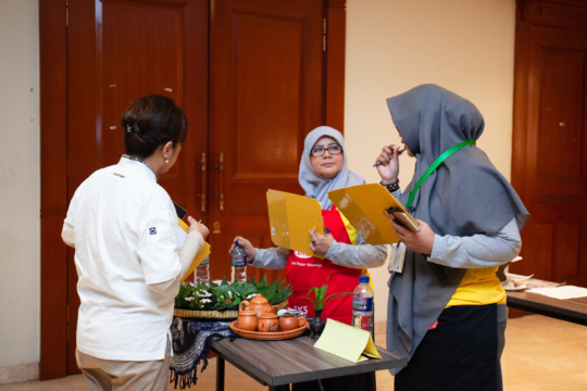 PENJURIAN langsung dilakukan. Juri menilai sambil menjaga wajah tetap “lempeng”. Soalnya di luar dinding kaca, peserta lomba menatap tajam setajam silet! 😂😂😂